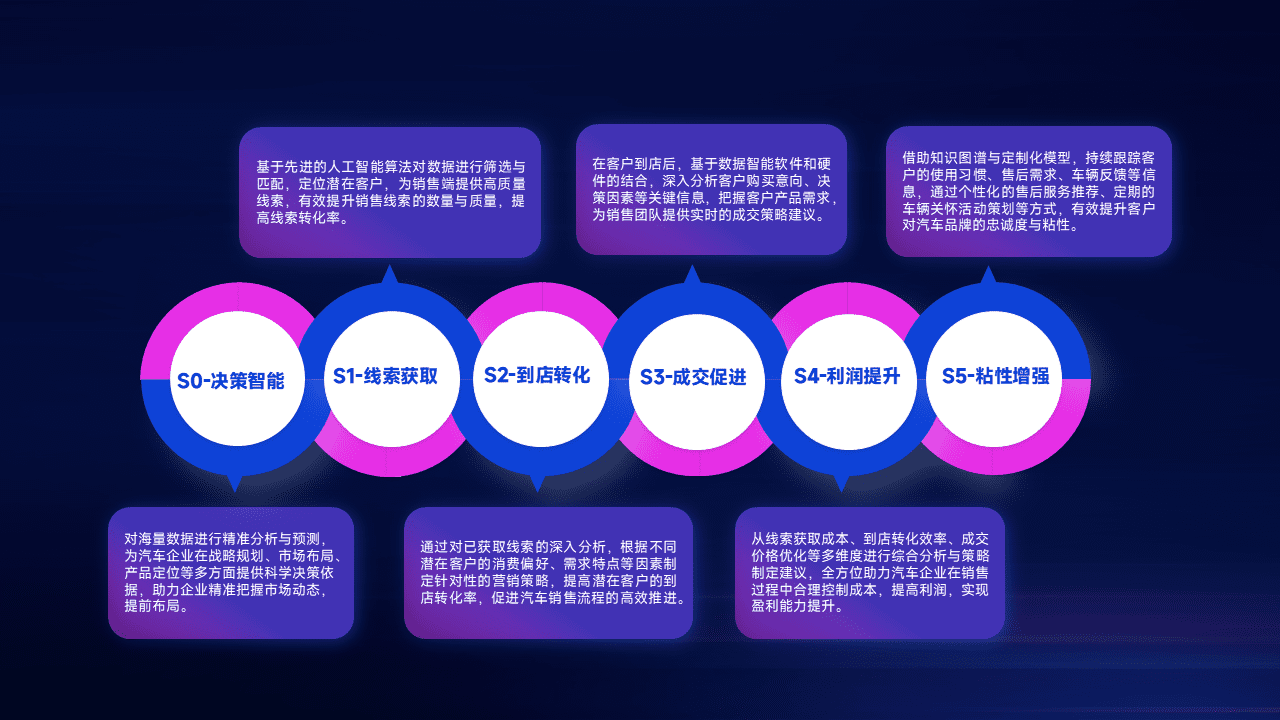 通过拓宽潜在客户来源、、优化线索分配并提高到店转化率,,,,以增强销售效率。。。同时,,,利用线索数据不断优化分析模型,,,,有效提升转化率,,扩大营销影响力。。。